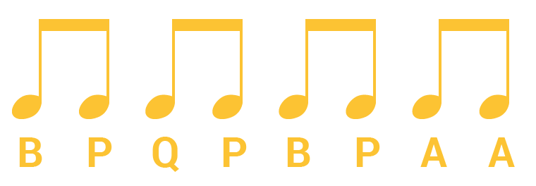 Juego tímbrico vocal onomatopéyico, con estructuras binarias.