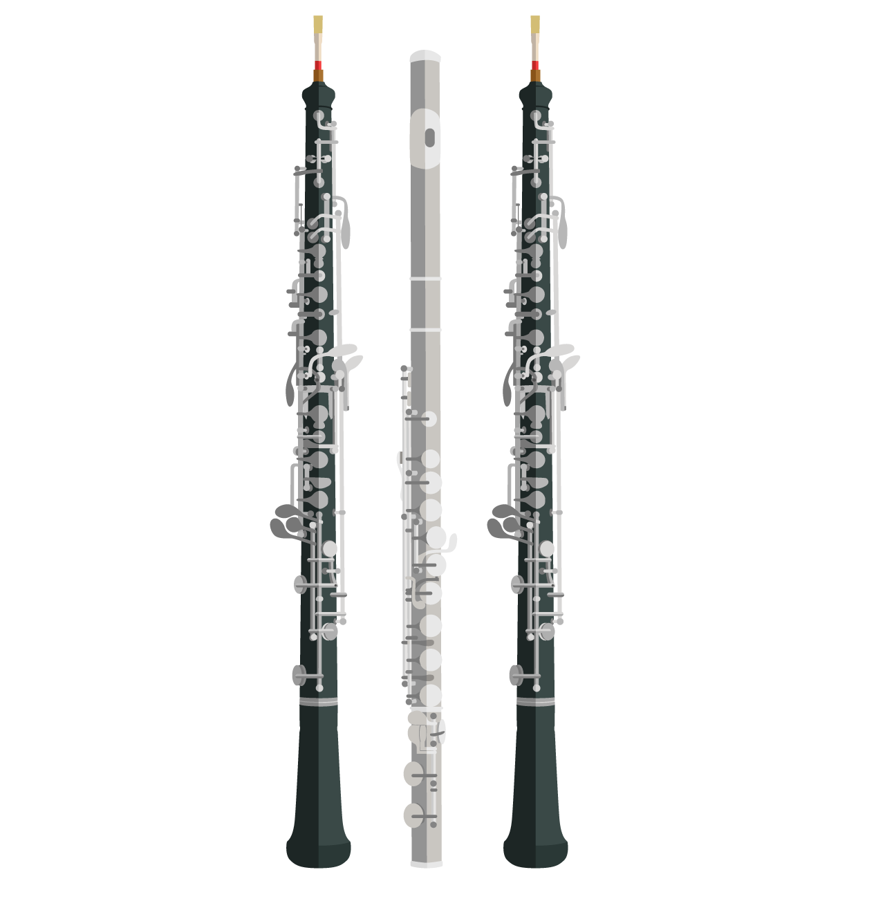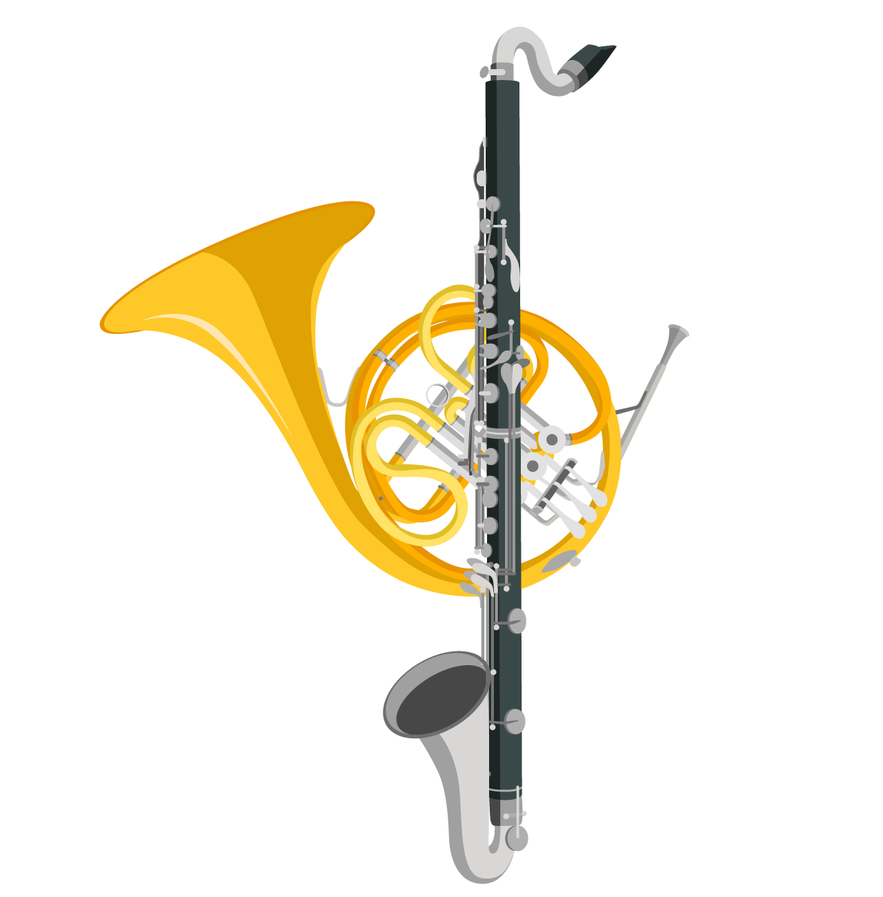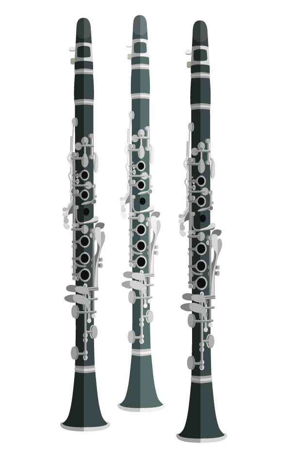 Clarinete, fliscorno o bombardino, redoblante, tambora y platillos.