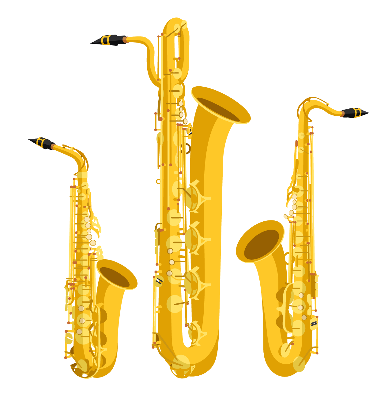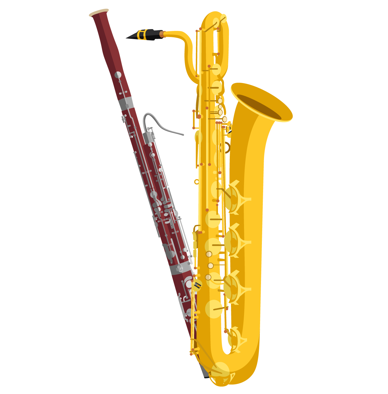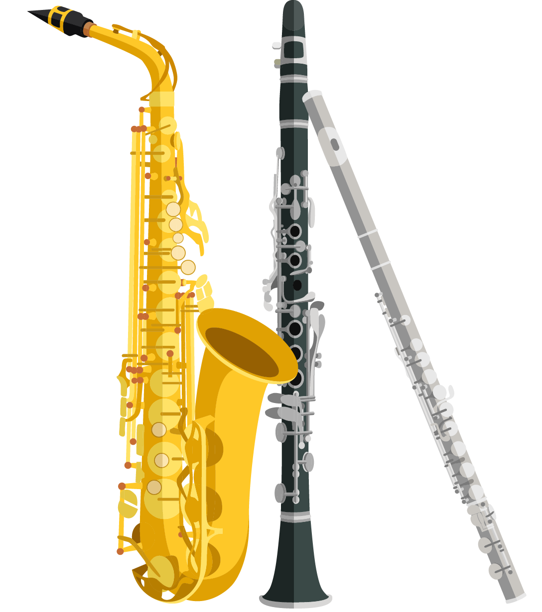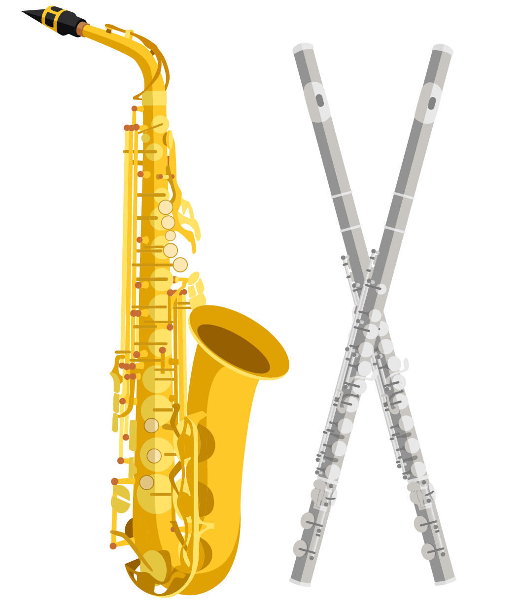 Flauta, saxofón barítono, saxofón alto, saxofón tenor y otras percusiones (opcional, depende de los ritmos interpretados).